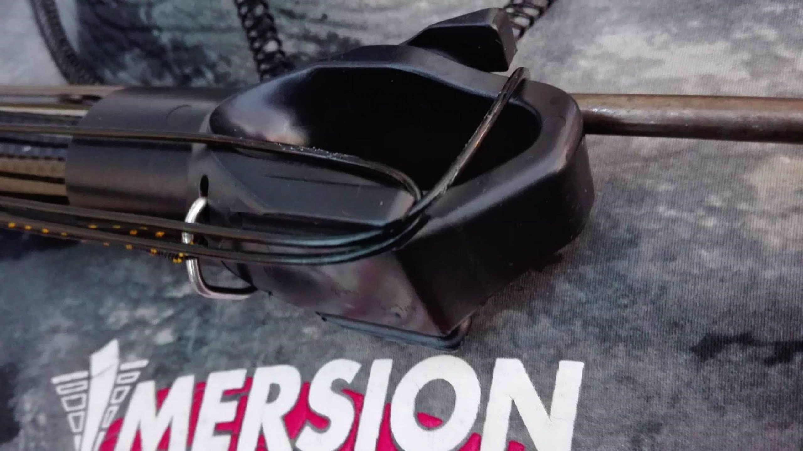 « Une fois dans l’eau, première constatation, le fusil flotte parfaitement à l’horizontale, même équipé de sa flèche, de son moulinet et de 2 sandows !